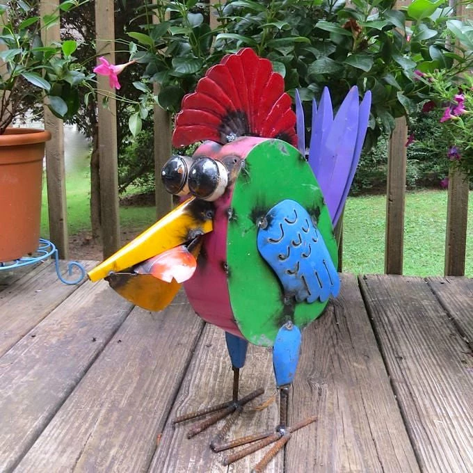 No two sculptures exactly alike, colors vary, all are vibrant and unusual, one-of-a-kind pieces. Grab one of these goofy birds for a downright fun accent in your garden!