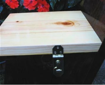 Brass hinges and side locking clip protects nestlings from predator’s clever hands. Back plate mounting strip for easy installation on a tree, fence or wood post.