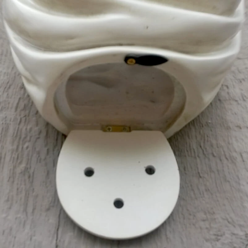 Sculpted angel trio graces the top portion of bird house with meticulous detail- while billowing dresses form the nest cavity. Hand painted facial features create this exquisitely detailed sculptural birdhouse.